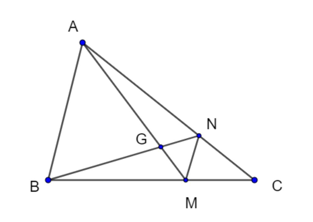 `=> \frac{GM}{GA}=\frac{MN}{AB}=1/3` (định lý ta lét)