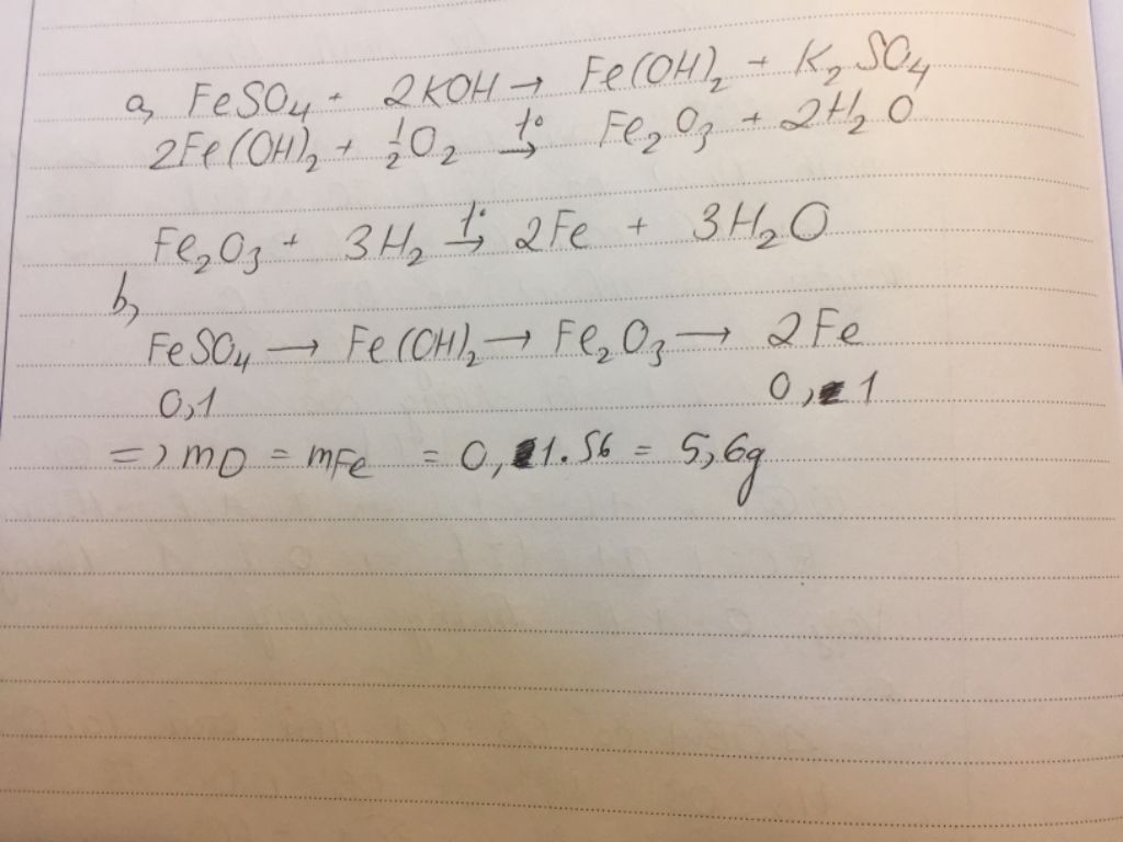 a)PTHH FeSO4 + 2KOH -> Fe(OH)2↓ + K2SO4 (1)