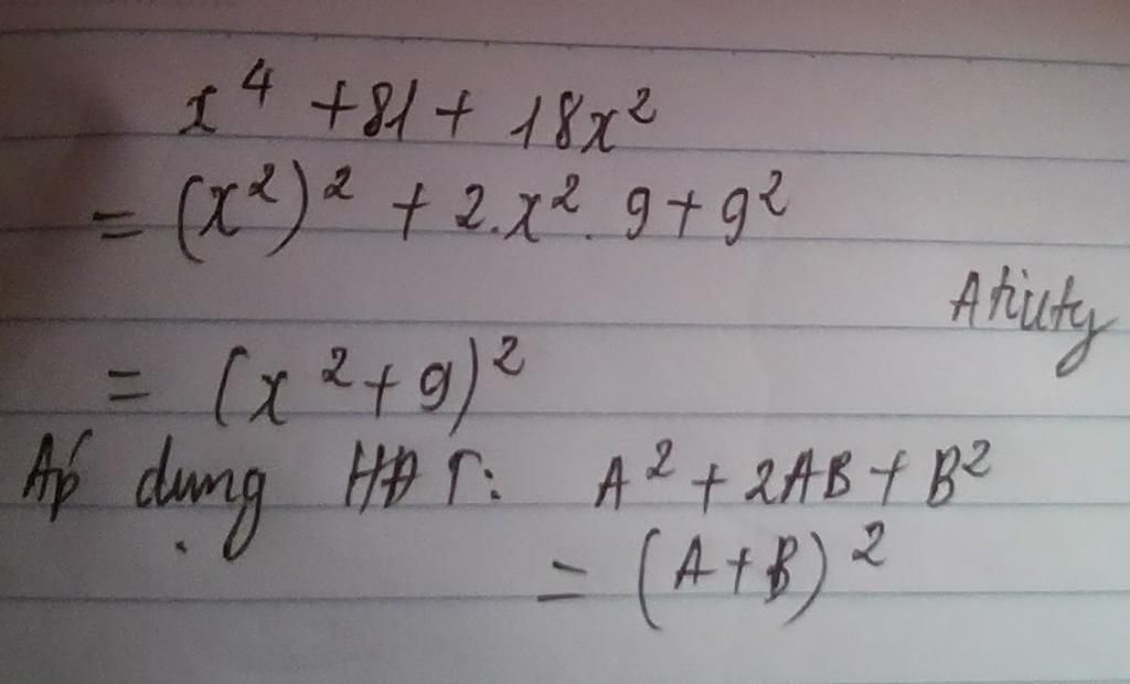 `= (x^2)^2 + 2 . x^2 . 9 + 9^2`