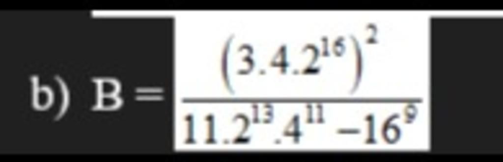 `B= \frac{(3.4.2^16)^2}{11.2^13 . 4^11 - 16^9}`