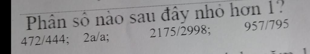 Phân số nhỏ hơn 1 là 2175/2998 vì phân số nhỏ hơn 1 là tử số nhỏ hơn mẫu số ạ