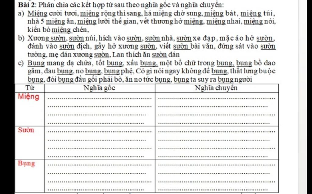 *) nghĩa chuyển : sườn núi ; sườn nhà ; sườn xe đạp ; đánh vào sườn địch ; viết sườn bài văn ; đứng sát vào sườn tường ; LAn thích ăn sườn rán (không phải dán đâu nhé , dán như trong bài là sai rồi).