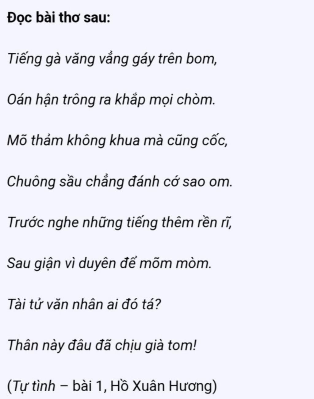 2. Nhân vật trữ tình trong bài thơ chính là tác giả Hồ Xuân Hương