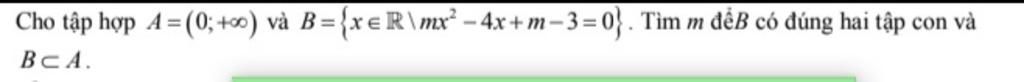 và đk là B con A thì chỉ có phần tử dương thui và m=3 hay 1 thì vẫn tmdk nha bn