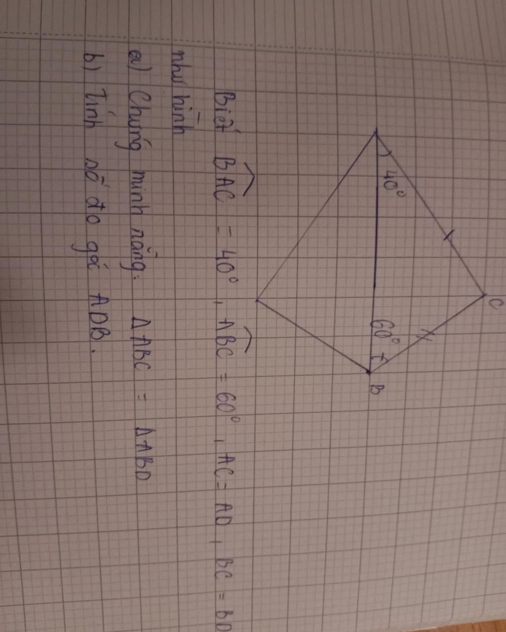 Đề là ABC = ADC mình ghi nhầm v sửa saoo b🥲