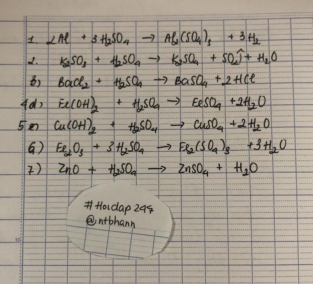 1. `2Al + 3H_2SO_4->Al_2(SO_4)_3 + 3H_2`