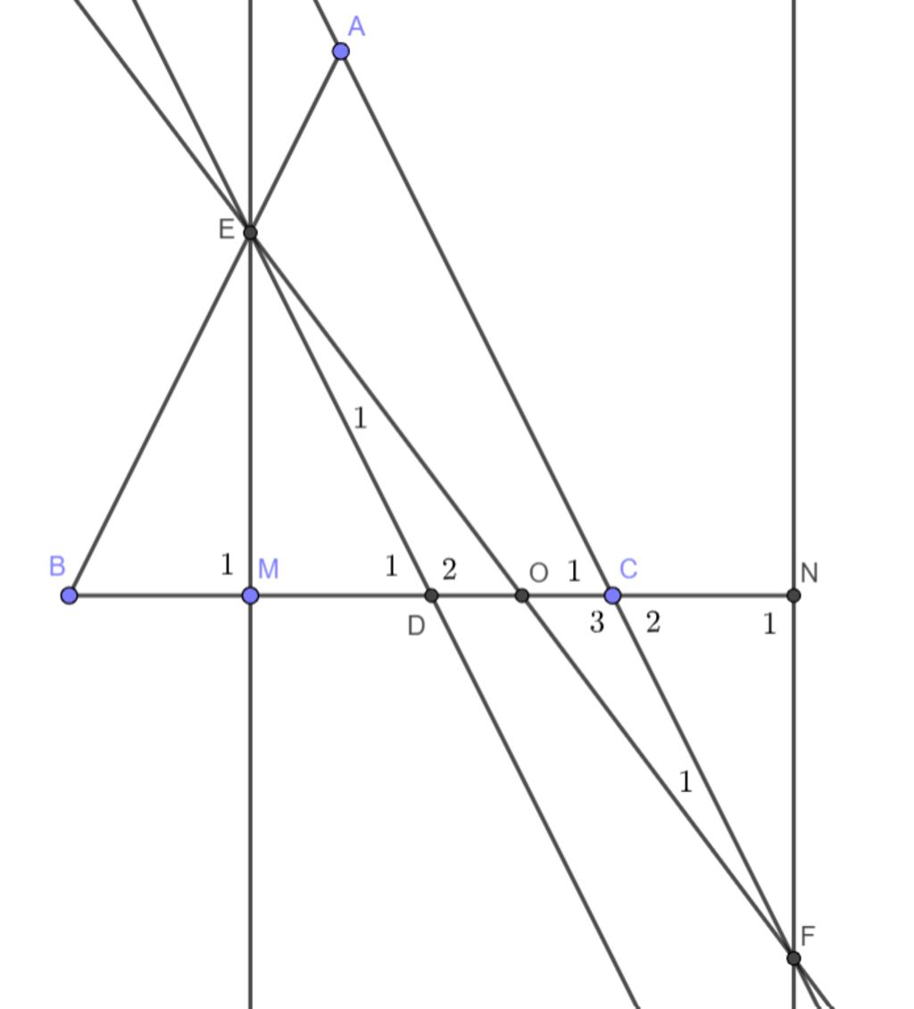 Lại có $EB=CF$ do $\Delta BME = \Delta CNF $