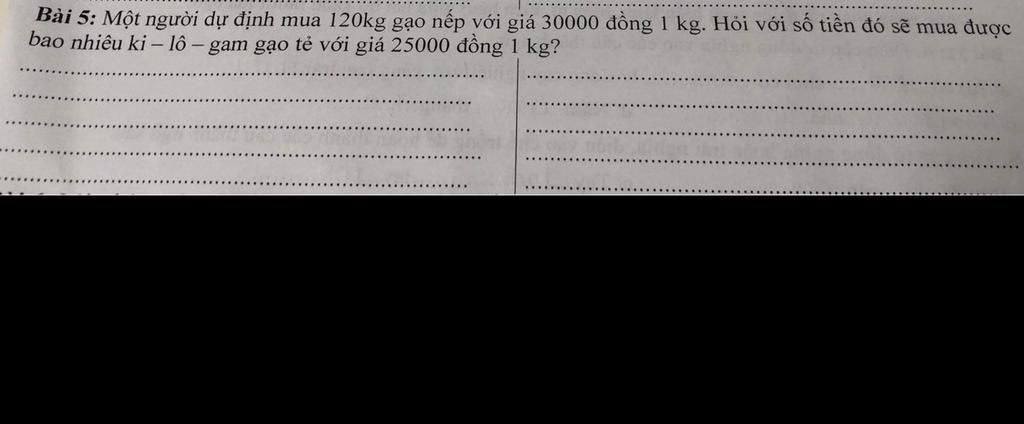 Với số tiền đó sẽ mua được số ki-lô-gam gạo tẻ với giá `25000` đồng `1` `kg` là:
