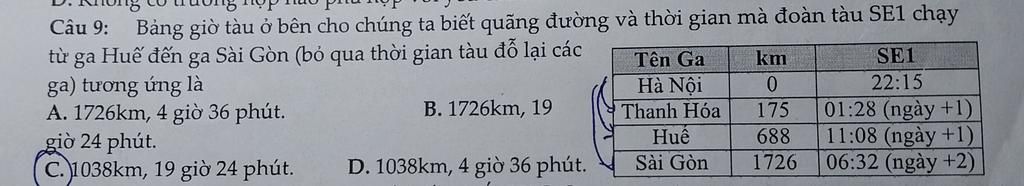 Thời gian chạy chạy từ `11:08` (Tại ga Huế) đến `24h` là: