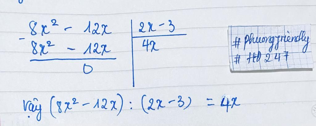 Vậy: $(8^{2}-12x)$ : $(2x-3)$ = $4x$