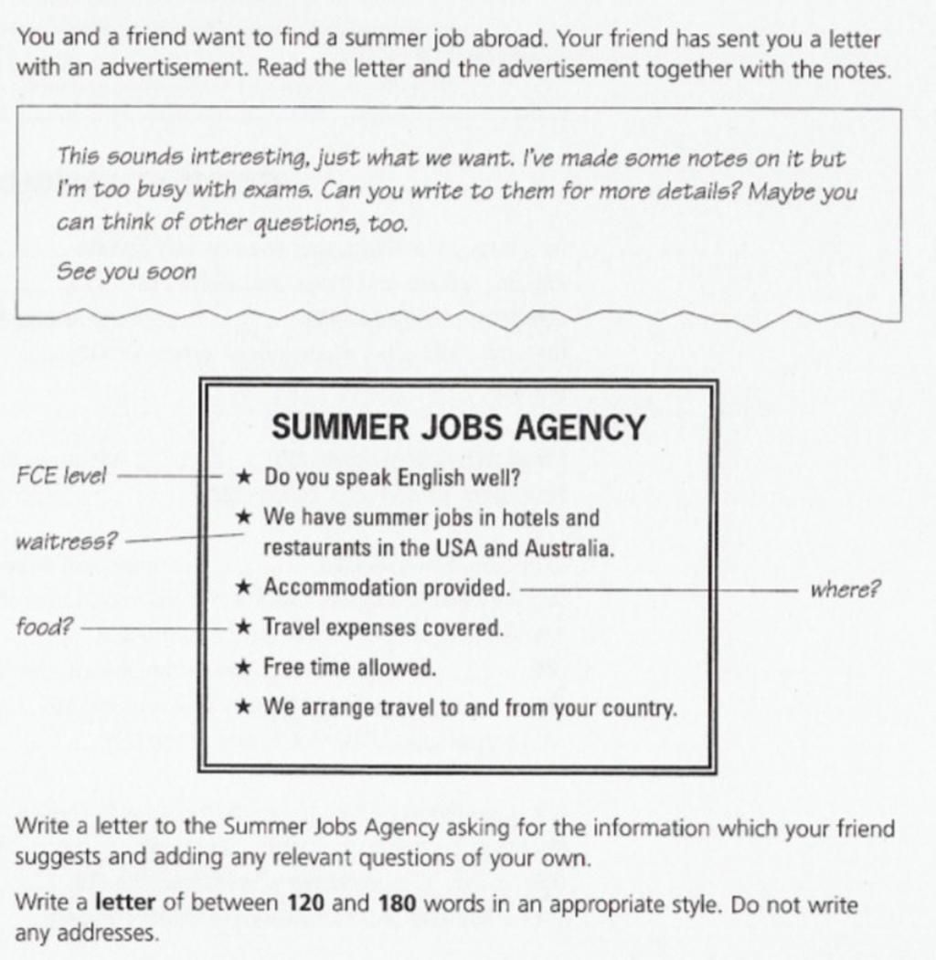 You and a friend want to find a summer job abroad. Your friend has sent you a letter