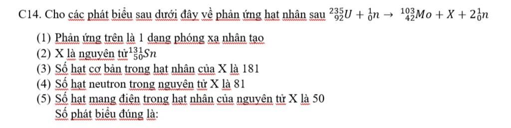 Hay X là Tin - 131 $^{131}_{50}Sn$