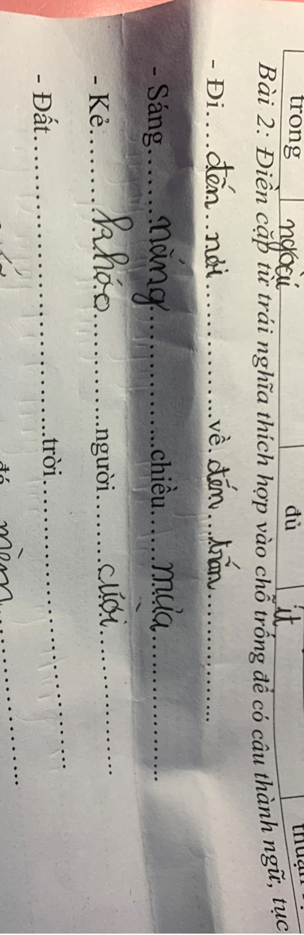 `-` Từ trái nghĩa : đến nơi - đến chốn