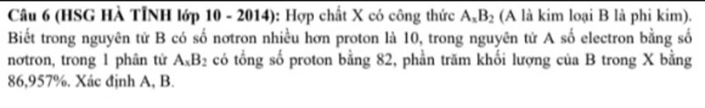 Với $P_A=12$ thì $A$ là Magnesium ($Mg$) còn $P_B=35$ thì là Bromine ($Br$)