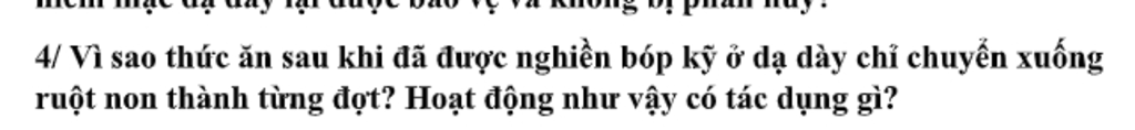 Sự co thắt từng đợt này giúp cho thức ăn xuống ruột từng đợt làm tăng hiệu suất tiêu hoá thức ăn xuống ruột nhanh , thức ăn sẽ không thấm đều được các enzim ruột ngoài ra ruột nhỏ nếu thức ăn xuống ào ạt có thể làm tổn thương ruột