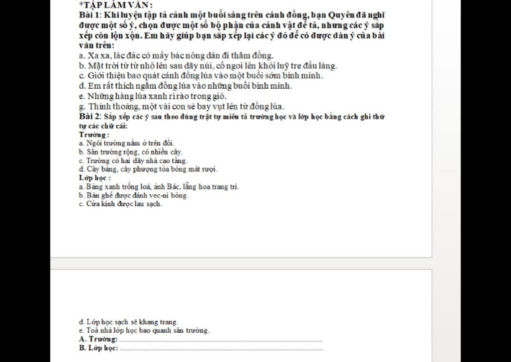 Các ý được sắp xếp như sau: c, b, e, g, a, d