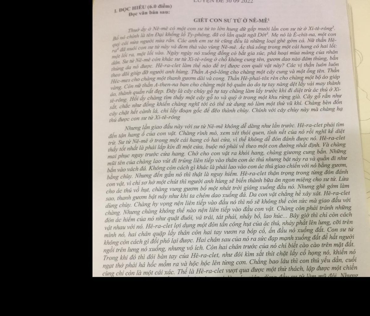 Nhắc đến truyện thần thoại chúng ta khong thể không nhắc tới tác phẩm "Giết con sư tử ở Nê-mê". Tác phẩm hội tụ vẻ đẹp nội dung và nghệ thuật đặc sắc. Qua tác phẩm ta cũng thấy được vẻ đẹp của anh hùng Hê-ra-clet.