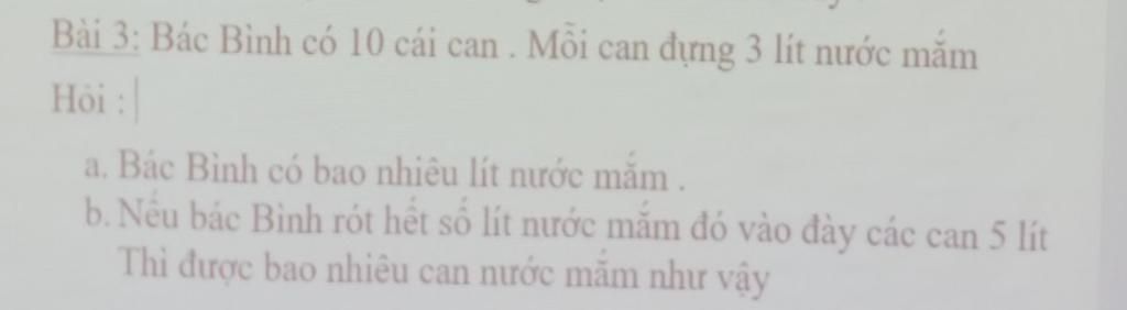 Mỗi can có `5` lít nước mắm thì sẽ được số can là: