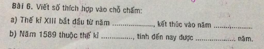 `b )` Năm `1589` thuộc thế kỉ `XVI``(` thế kỉ `16` `)`, tính đến nay được `432` năm.