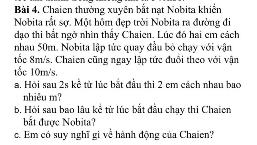 b)Thời gian `t(s)` kể từ lúc `2` bạn bắt đầu chạy đến khi Chaien bắt được Nobita là: