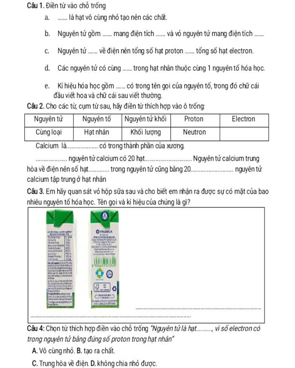a. Nguyên tử là hạt vô cùng nhỏ tạo nên các chất.
