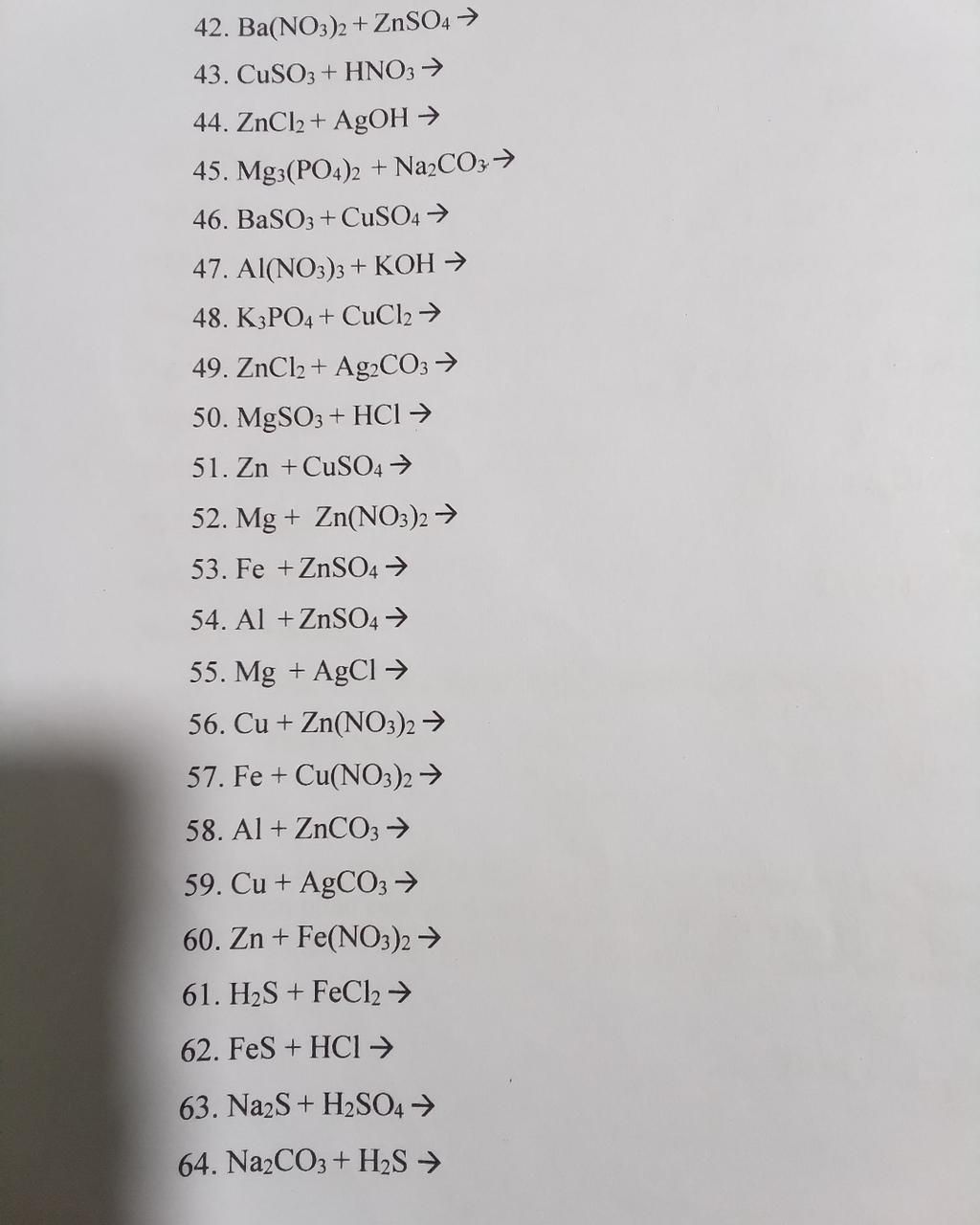 42)Ba{(N{O_3})_2} + ZnS{O_4} \to BaS{O_4} + Zn{(N{O_3})_2}\\