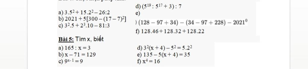 `3 . 5^2 + 15 . 2^2 - 26 : 2`