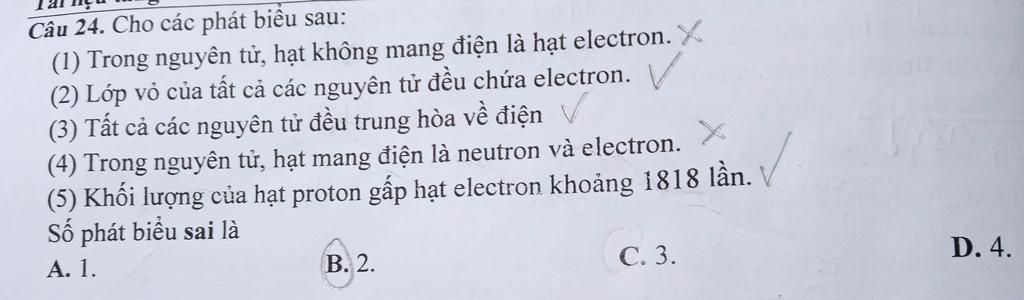 Mà anh ơi, em lấy `1/{0,00055}`=1816 lần. Nhưng em lấy `{1,673.10^{-24}}/{9,11.10^{-28}}`lại là 1836 lần. Vậy ý 5 đúng ko ạ
