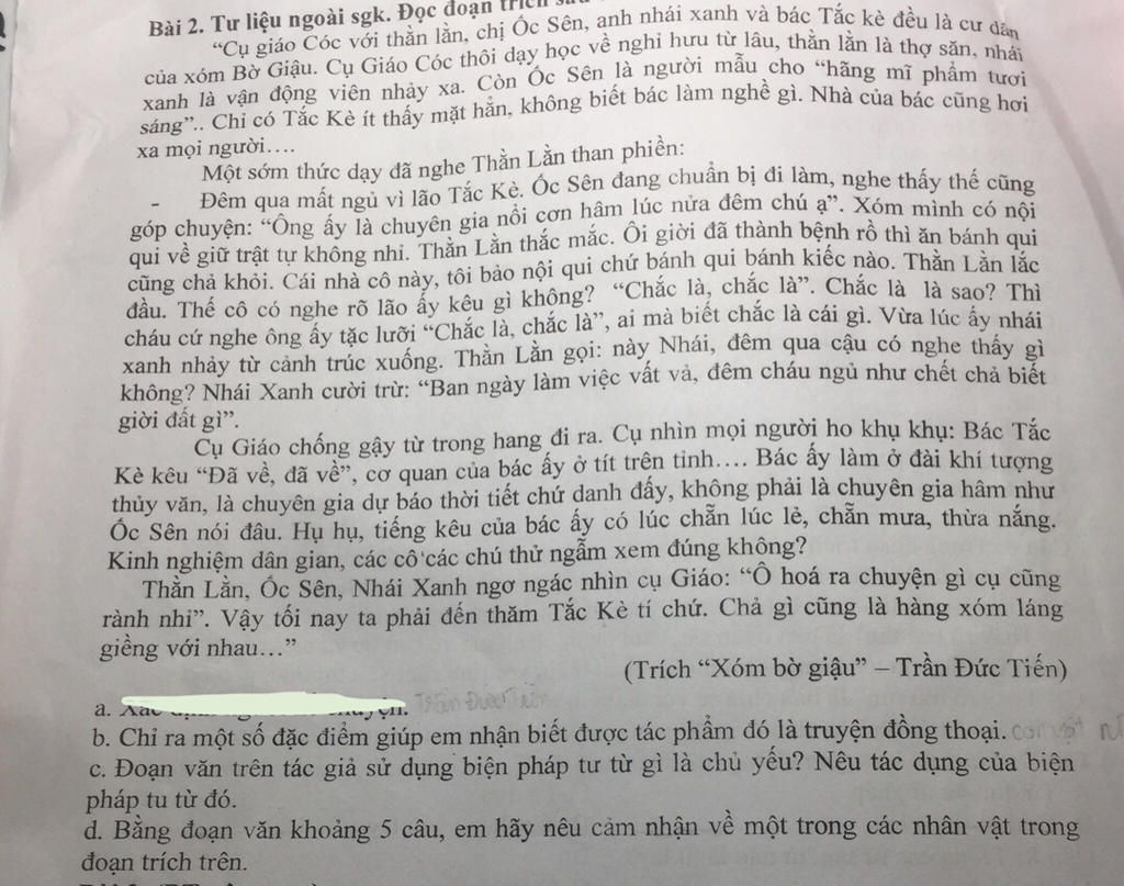 Bài 2. Tư liệu ngoài sgk. Đọc đoạn