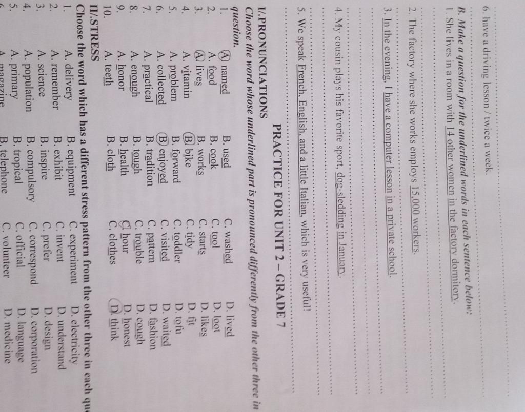 B. Make a question for the underlined words in each sentence below: