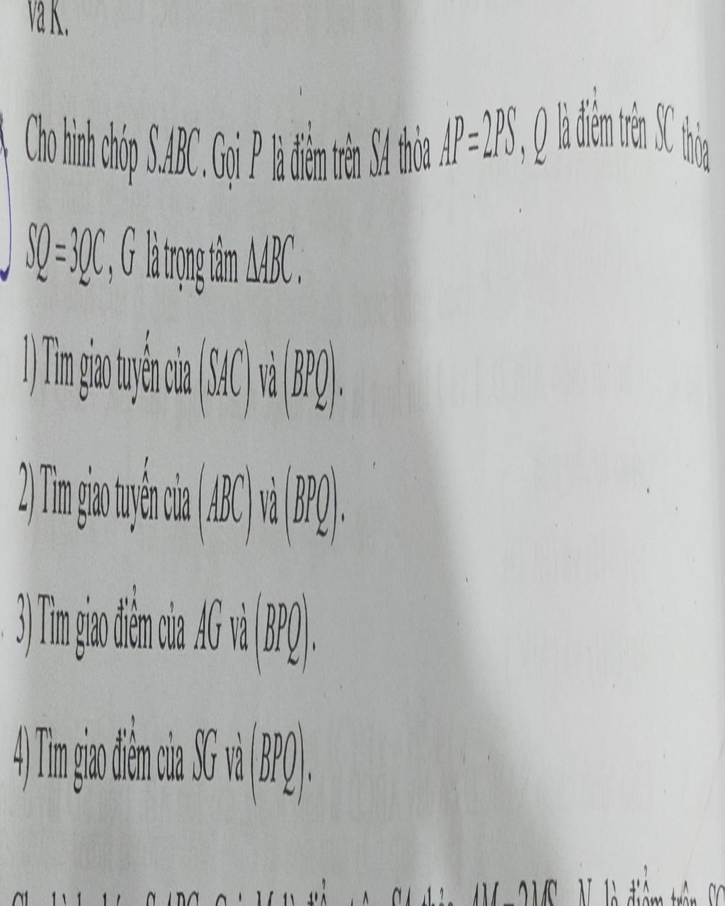 * Cho hình chóp S.ABC. Gọi P là điểm trên 31 thỏa AP=2P3, Q là điểm trên C ho