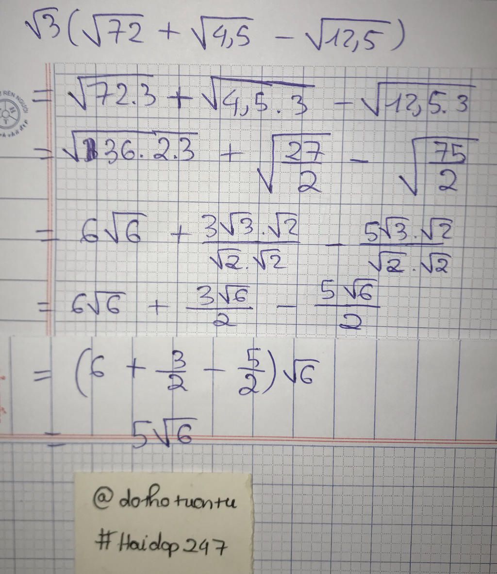 `= \sqrt{3}.(6\sqrt{2} + \sqrt{4,5} - \sqrt{12,5})`