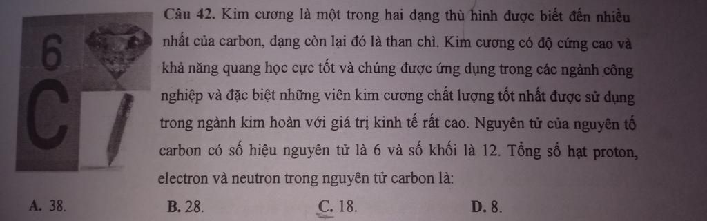 Vậy tổng số hạt P,e,n trong NTử C là 18 hạt