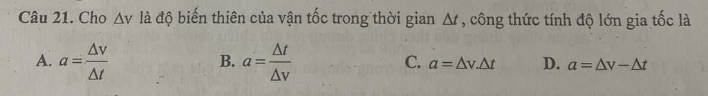 `Deltav` là độ thay đổi của vận tốc $(m/s)$