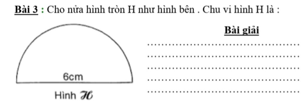 Nửa chu vi hình tròn H là :