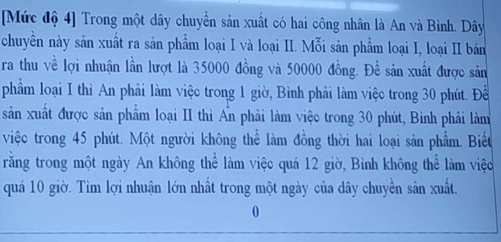 $\to $Cần làm $8$ sản phẩm loại $I$ và $8$ sản phẩm loại $II$