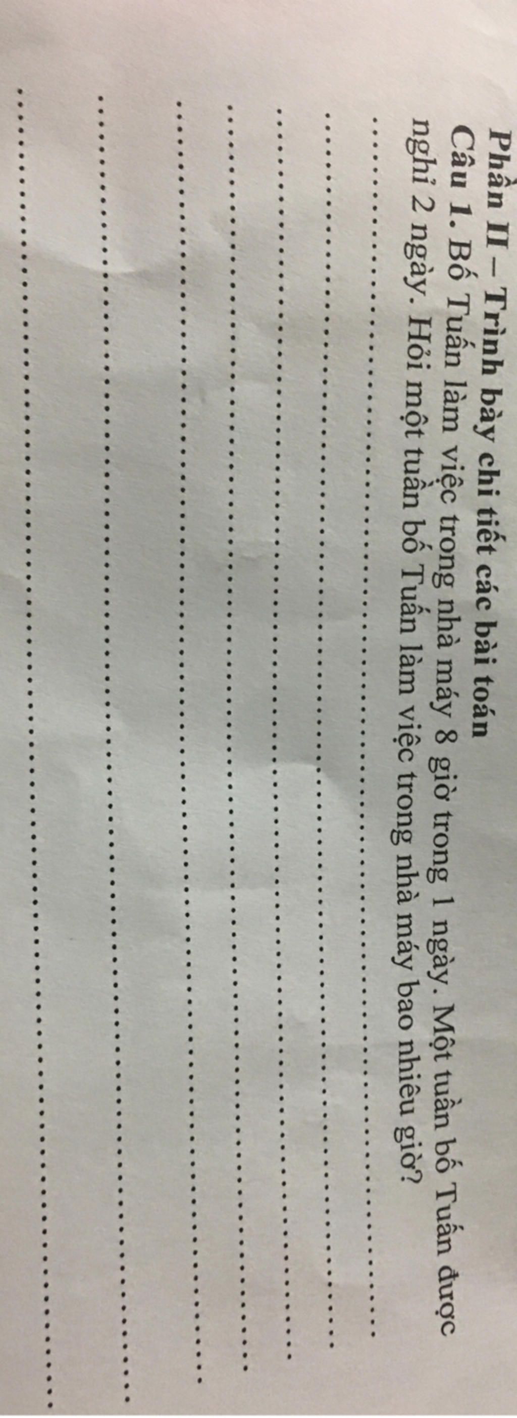 Một tuần bố Tuấn làm việc trong nhà máy số giờ là :
