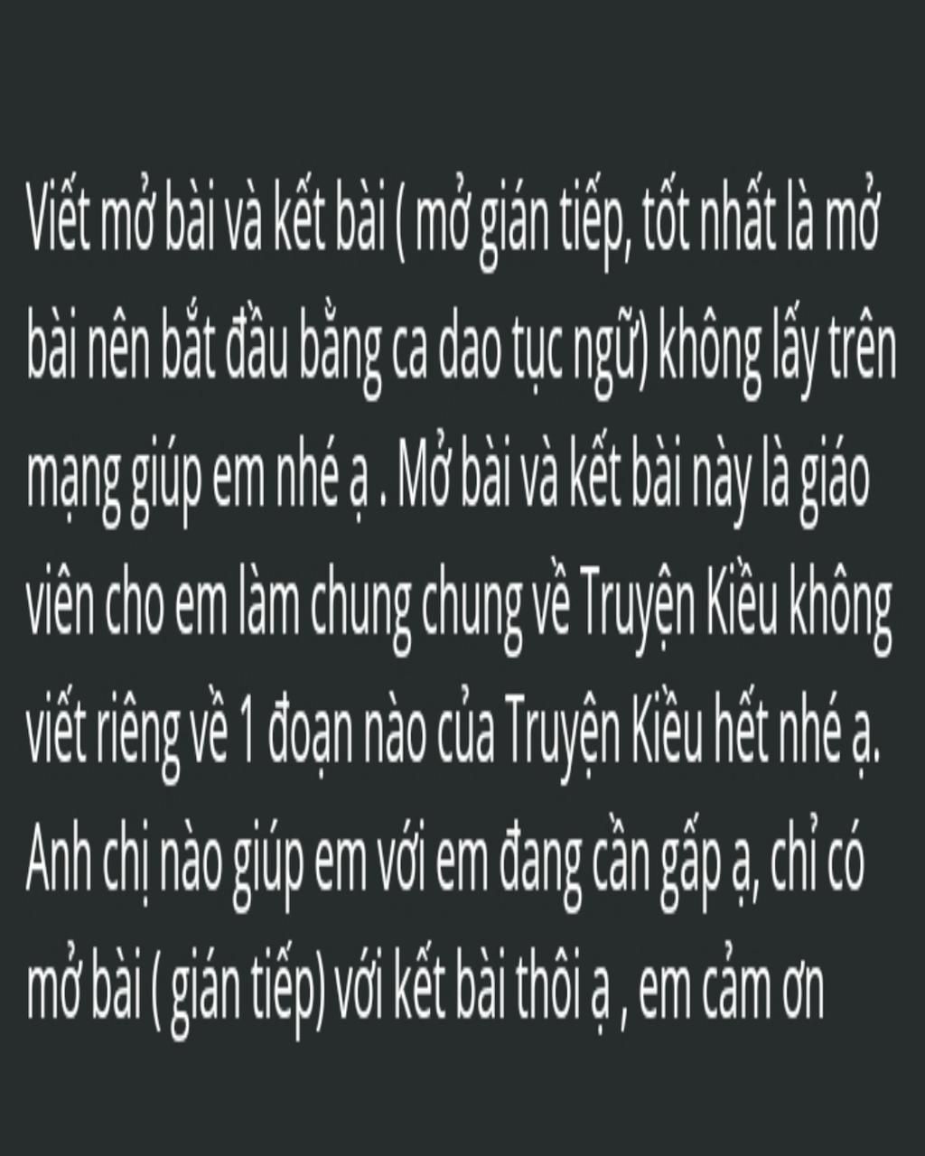 Mở bài ( Truyện Kiều) bằng cách gián tiếp và mở bài bắt đầu bằng 1 ca dao tục ngữ hoặc 1 đoạn thơ ngắn để dẫn vào mở bài . Ai giúp em với ạ, em cảm ơn