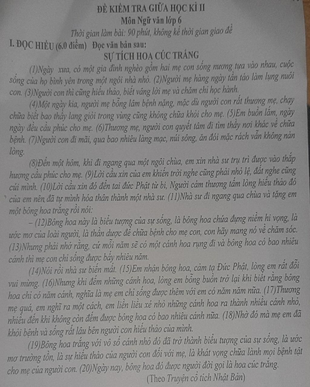 2 D. Muốn mẹ sống lâu cậu bé đã xé bông hoa thành nhiều cánh nhỏ
