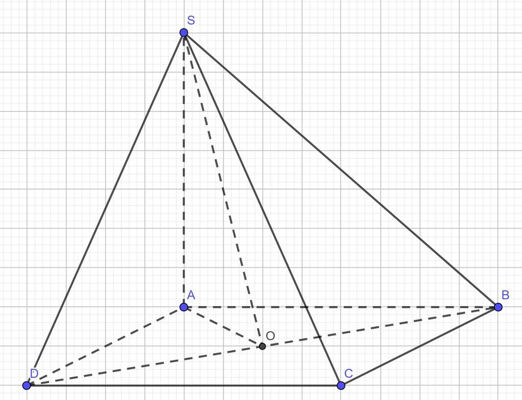 `SA⊥(ABCD) ⇒ SA⊥AO` với `O` là tâm của đáy `(ABCD)`