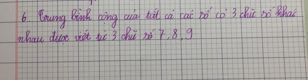 Trung bình cộng của những số có `3` chữ số khác nhau được lập tư ba chữ số `7;8;9` là `:`