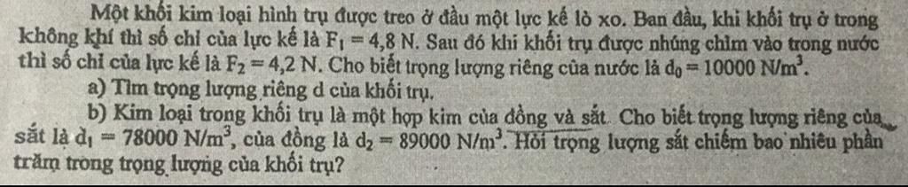 Vậy trọng lượng sắt chiếm khoảng `79,77%` trọng lượng của khối trụ