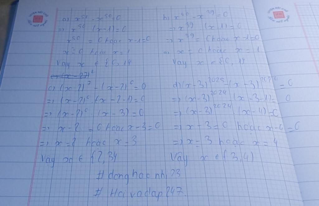 `⇒ x^50 = 0` hoặc `x - 1 = 0`