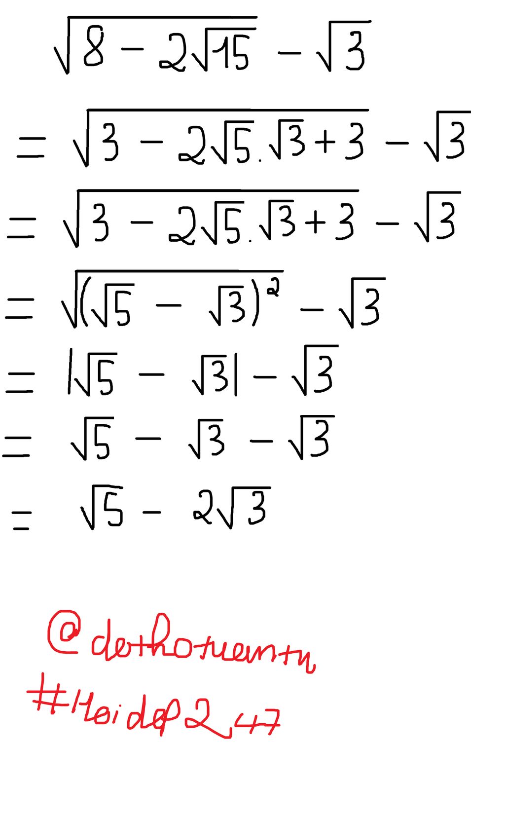 `=sqrt{8-2\sqrt{15}}-\sqrt{3}`