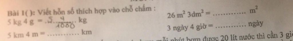 `3` ngày `4` giờ `= 3` ngày `+ 4/24` giờ `= 3 4/24` ngày