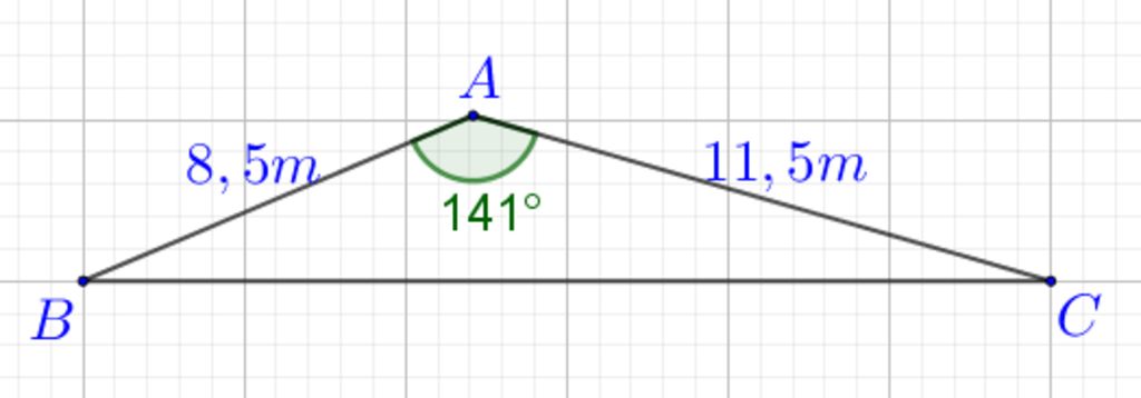 $\Rightarrow BC=\sqrt{8,{{5}^{2}}+11,{{5}^{2}}-2.8,5.11,5.\cos 141{}^\circ }$