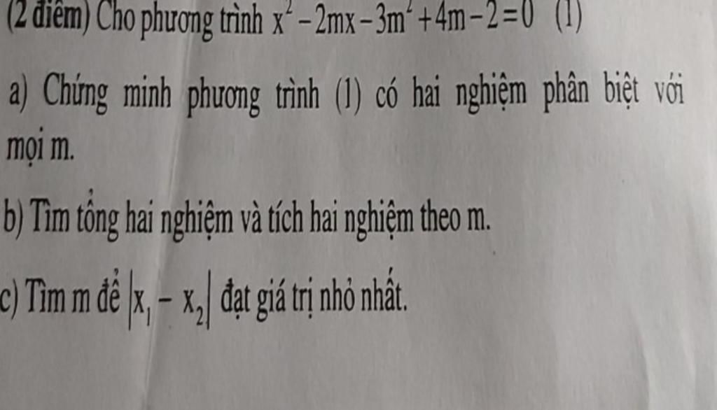 Vậy tổng hai nghiệm là `2m ;` tích hai nghiệm là `-3m²+4m-2`