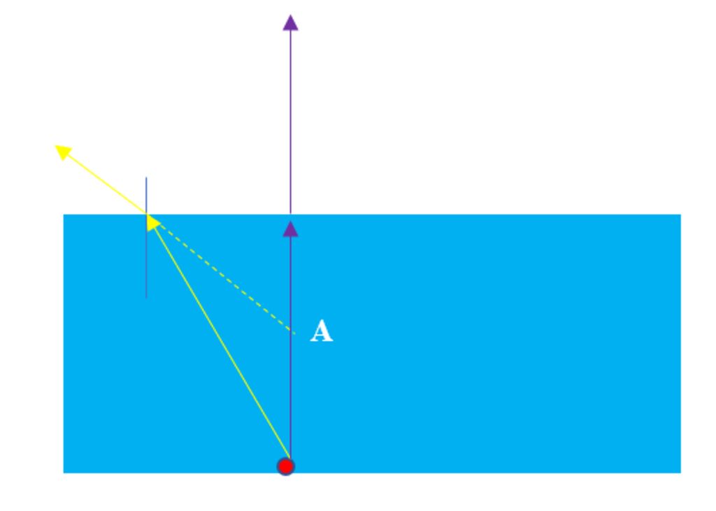 Bạn có thể xem hình dưới, khi ánh sáng từ đáy hồ truyền đến mắt ta như hình thì ta cảm giác điểm A chính là đáy hồ (A là ảnh của điểm sáng từ đáy hồ truyền đến mắt ta)