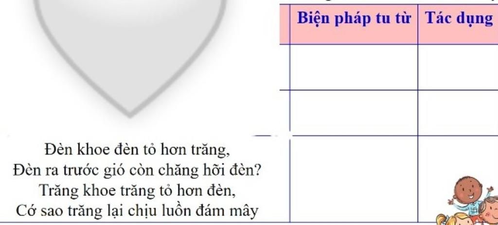 BPTT : Nhân hóa 2 sự vật là đèn và trăng