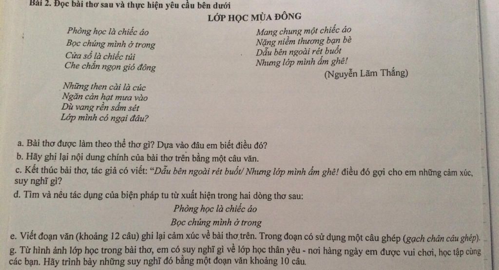Bài 2. Đọc bài thơ sau và thực hiện yêu cầu bên dưới